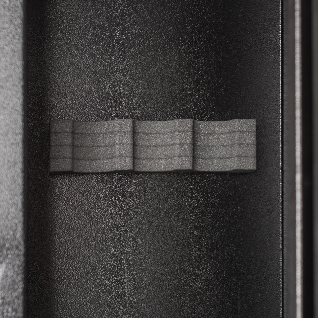 Внутренняя часть двери закрыта фальшпанелью. Дверь данного сейфа утоплена, что повышает его надежность. Дверное отверстие усилено.