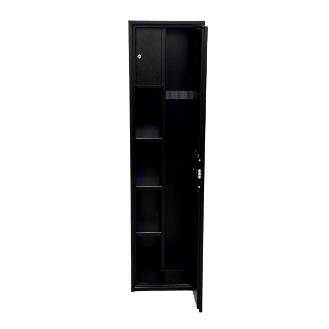 Оружейный сейф с фальшпанелью ШОЛ-1370 окрашен порошковой краской, что придает ему приятный внешний вид и защищает его от коррозии. Цвет черный RAL9005.