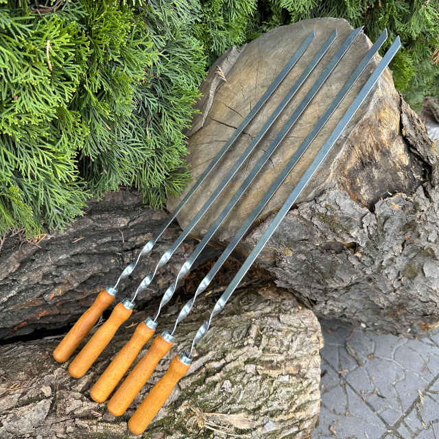 Уникальная особенность шампура - деревянная ручка. Она не только придает шампуру элегантный и натуральный вид, но и обеспечивает надежное удерживание и комфортное использование. А еще ручка предотвращает передачу тепла от нагретой стали на руку пользователя.