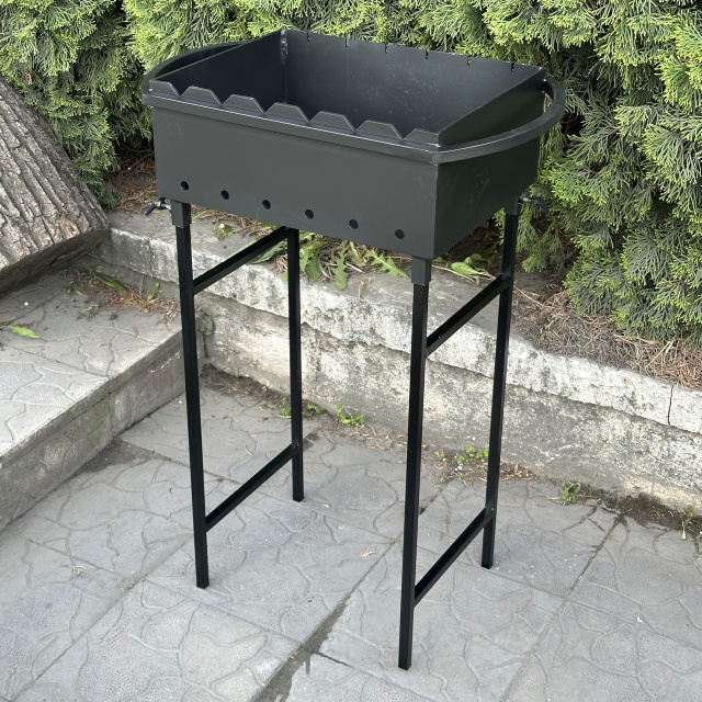 Благодаря съемным ножкам, покрытыми черной порошковой краской, мангал становиться удобным для транспортировки и хранения, что делает его идеальным выбором для поездок на природу или использования на террасе.
