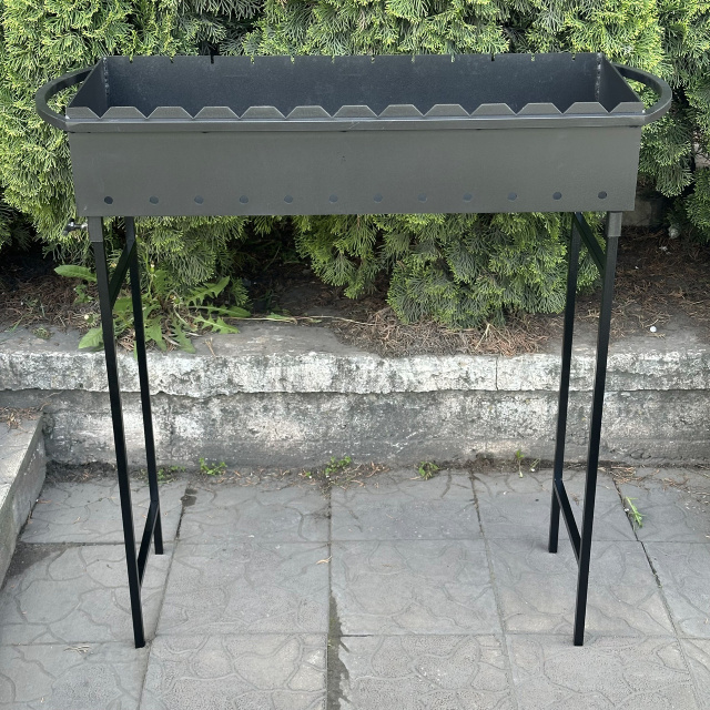 Благодаря съемным ножкам, покрытыми черной порошковой краской, мангал становиться удобным для транспортировки и хранения, что делает его идеальным выбором для поездок на природу или использования на террасе.