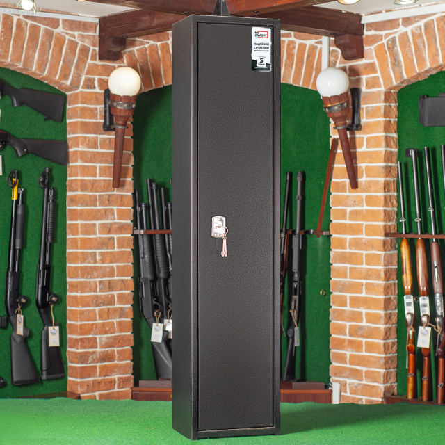 Сейф предназначен для хранения 2 единиц огнестрельного оружия до 1220 мм высотой и патронов. Соответствует требованиям разрешительной системы: замок сувальдного типа, предусмотрена возможность крепления к полу, оборудованный отсеком для хранения патронов.