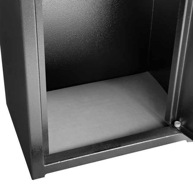 Сейф окрашен порошковой краской (запекается в печи при 180С), что придает ему приятный внешний вид и защищает его от коррозии.