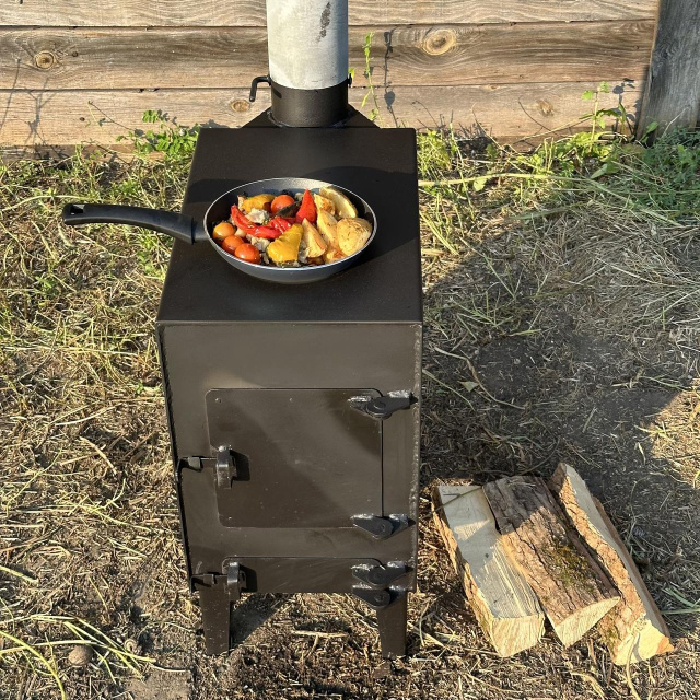 Печь-буржуйка BP-50V отопительная с варочной поверхностью на дровах – компактная металлическая конструкция, предназначенная для внутреннего обогрева помещений и приготовления пищи.