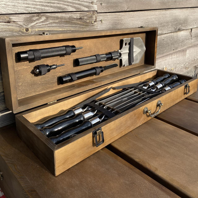 Подарочный набор шампуров - символ гостеприимства и радости приготовления пищи на открытом воздухе. Будьте уверены, что ваш подарок будет востребован и оценен на любом мероприятии.