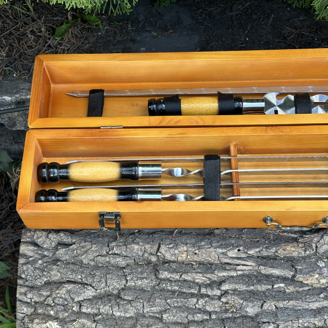 Подарочный набор шампуров - символ гостеприимства и радости приготовления пищи на открытом воздухе. Будьте уверены, что ваш подарок будет востребован и оценен на любом мероприятии.