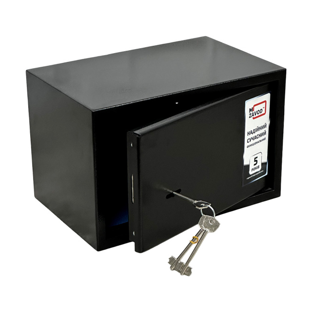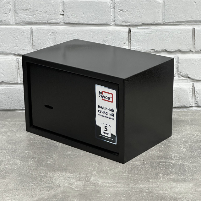 Конструкция сейфа выполнена из листовой стали толщиной 1 мм корпус, 2 мм дверная плита. Дверное отверстие усилено. Края двери загнуты внутрь, что увеличивает прочность и взламоустойчивость. Сейф обладает внутренними петлями – эти особенности конструкции также увеличивают его надежность.