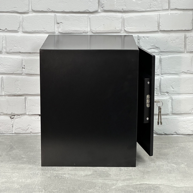 Конструкция сейфа выполнена из листовой стали толщиной 1 мм корпус, 2 мм дверная плита. Дверное отверстие усилено. Края двери загнуты внутрь, что увеличивает прочность и взламоустойчивость. Сейф обладает внутренними петлями – эти особенности конструкции также увеличивают его надежность.