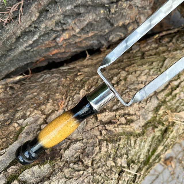 Двойной шампур Mzavod с деревянной ручкой 630х12х3мм двухцветный