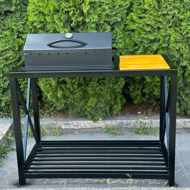 ДРОВНИЦА-СТОЛЕШНИЦА это не просто основа конструкции мангала-лофт. Это основа стиля и комфорта: жаровня удобно размещается внутри, погружаясь на 7 см; на деревянной полке вы можете разместить маринады, приправы, горячие блюда, а может и кружку с вашим любимым напитком, пока вы готовите. Ребра жесткости верхнего этажа не только добавляют конструкции надежности –; но могут пригодиться как дополнительное место для размещения принадлежностей, а нижний ярус предназначен для дров и угля. Мы позаботились даже о маленьких пустяках. - такие как приваренные крючки для ложки или щипцов, или кочерги – чтобы вы действительно получали удовольствие от процесса приготовления