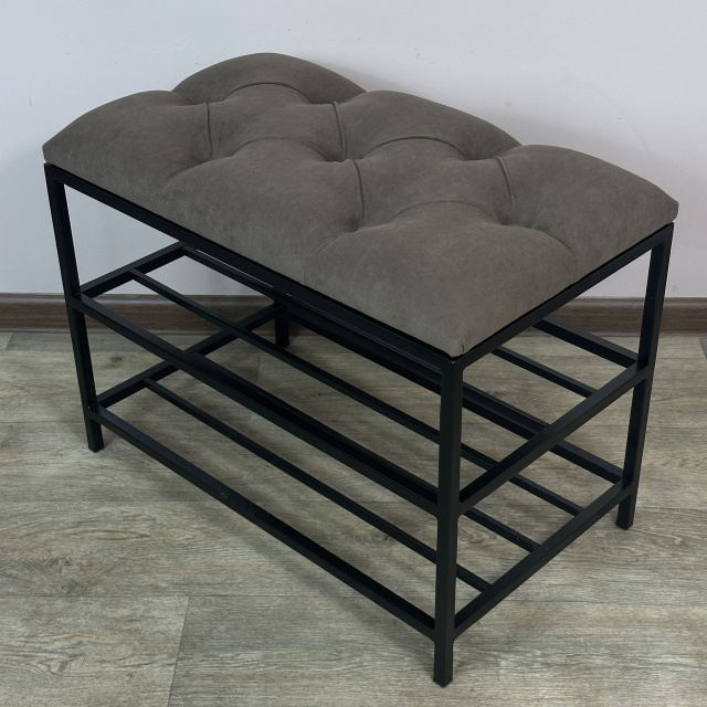 Банкетка является многофункциональной мебелью, которая сочетает в себе стильный дизайн, прочность и надежность конструкции, а также функциональность. Сварной металлический каркас с 2 полками, изготовленный из профильных стальных труб сечением 15х15мм и 10х10мм и покрытый порошковой краской, является основой банкетки и обеспечивает ей высокую устойчивость и долговечность. Для изготовления сиденья используются поролон толщиной 50мм и износоустойчивый мебельный велюр, с применением разных способов обивки: каретная стяжка, линейная стяжка (утяжка) или просто ровные. Благодаря своему внешнему виду и полочкам Банкетку можно использовать в прихожей, гостиной, спальне, а также - в офисе, примерочной или пригородном доме (даче). На полки можно поставить не только обувь, но и журналы и книги, небольшую домашнюю технику или другие малогабаритные предметы. В целом, такая банкетка обещает быть практичным и стильным дополнением к вашему дому, предоставляя место для сидения и удобное хранение, а также придающее интерьеру современный дизайнерский штрих. Материал каркаса: профильные трубы 15х15мм, 10х10мм Покрытие каркаса: порошковая краска Обивочный материал: износоустойчивый мебельный велюр Характеристики Длина: 50, 60, 70, 80, 90 и 100 см Глубина: 35 см Высота: 45 см