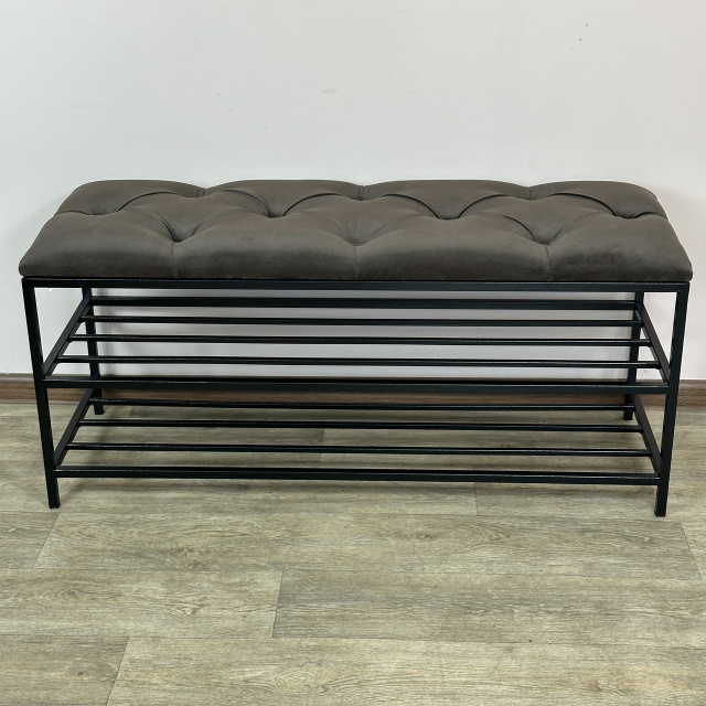 Банкетка для обуви Женева-1 90см велюр серо-коричневый 5-0-9005