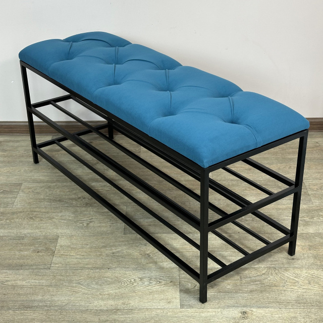 Банкетка является многофункциональной мебелью, которая сочетает в себе стильный дизайн, прочность и надежность конструкции, а также функциональность. Сварной металлический каркас с 2 полками, изготовленный из профильных стальных труб сечением 15х15мм и 10х10мм и покрытый порошковой краской, является основой банкетки и обеспечивает ей высокую устойчивость и долговечность. Для изготовления сиденья используются поролон толщиной 50мм и износоустойчивый мебельный велюр, с применением разных способов обивки: каретная стяжка, линейная стяжка (утяжка) или просто ровные. Благодаря своему внешнему виду и полочкам Банкетку можно использовать в прихожей, гостиной, спальне, а также - в офисе, примерочной или пригородном доме (даче). На полки можно поставить не только обувь, но и журналы и книги, небольшую домашнюю технику или другие малогабаритные предметы. В целом, такая банкетка обещает быть практичным и стильным дополнением к вашему дому, предоставляя место для сидения и удобное хранение, а также придающее интерьеру современный дизайнерский штрих. Материал каркаса: профильные трубы 15х15мм, 10х10мм Покрытие каркаса: порошковая краска Обивочный материал: износоустойчивый мебельный велюр Характеристики Длина: 50, 60, 70, 80, 90 и 100 см Глубина: 35 см Высота: 45 см