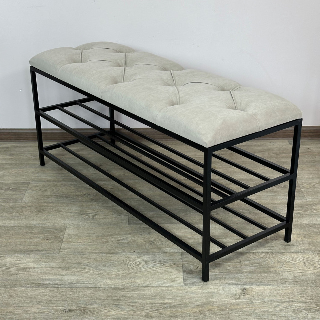 Банкетка является многофункциональной мебелью, которая сочетает в себе стильный дизайн, прочность и надежность конструкции, а также функциональность. Сварной металлический каркас с 2 полками, изготовленный из профильных стальных труб сечением 15х15мм и 10х10мм и покрытый порошковой краской, является основой банкетки и обеспечивает ей высокую устойчивость и долговечность. Для изготовления сиденья используются поролон толщиной 50мм и износоустойчивый мебельный велюр, с применением разных способов обивки: каретная стяжка, линейная стяжка (утяжка) или просто ровные. Благодаря своему внешнему виду и полочкам Банкетку можно использовать в прихожей, гостиной, спальне, а также - в офисе, примерочной или пригородном доме (даче). На полки можно поставить не только обувь, но и журналы и книги, небольшую домашнюю технику или другие малогабаритные предметы. В целом, такая банкетка обещает быть практичным и стильным дополнением к вашему дому, предоставляя место для сидения и удобное хранение, а также придающее интерьеру современный дизайнерский штрих. Материал каркаса: профильные трубы 15х15мм, 10х10мм Покрытие каркаса: порошковая краска Обивочный материал: износоустойчивый мебельный велюр Характеристики Длина: 50, 60, 70, 80, 90 и 100 см Глубина: 35 см Высота: 45 см