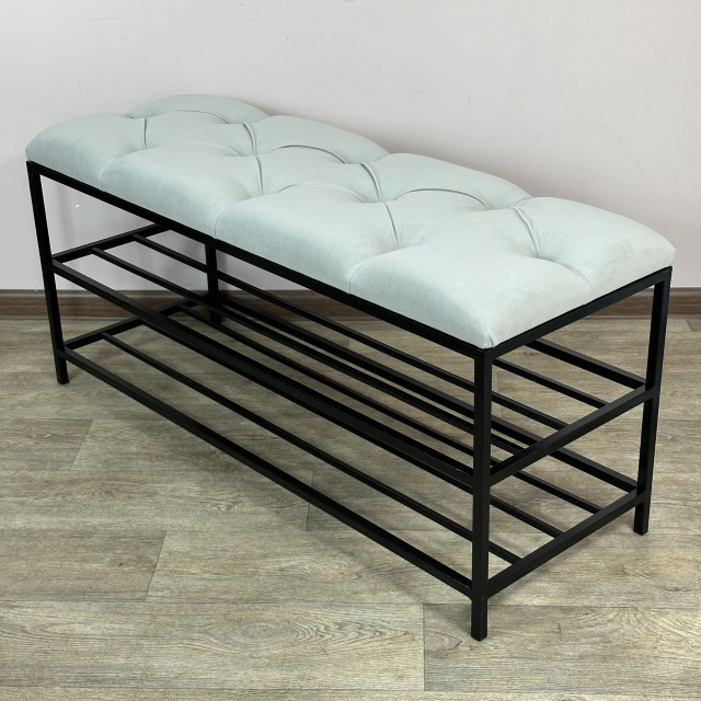 Банкетка является многофункциональной мебелью, которая сочетает в себе стильный дизайн, прочность и надежность конструкции, а также функциональность. Сварной металлический каркас с 2 полками, изготовленный из профильных стальных труб сечением 15х15мм и 10х10мм и покрытый порошковой краской, является основой банкетки и обеспечивает ей высокую устойчивость и долговечность. Для изготовления сиденья используются поролон толщиной 50мм и износоустойчивый мебельный велюр, с применением разных способов обивки: каретная стяжка, линейная стяжка (утяжка) или просто ровные. Благодаря своему внешнему виду и полочкам Банкетку можно использовать в прихожей, гостиной, спальне, а также - в офисе, примерочной или пригородном доме (даче). На полки можно поставить не только обувь, но и журналы и книги, небольшую домашнюю технику или другие малогабаритные предметы. В целом, такая банкетка обещает быть практичным и стильным дополнением к вашему дому, предоставляя место для сидения и удобное хранение, а также придающее интерьеру современный дизайнерский штрих. Материал каркаса: профильные трубы 15х15мм, 10х10мм Покрытие каркаса: порошковая краска Обивочный материал: износоустойчивый мебельный велюр Характеристики Длина: 50, 60, 70, 80, 90 и 100 см Глубина: 35 см Высота: 45 см