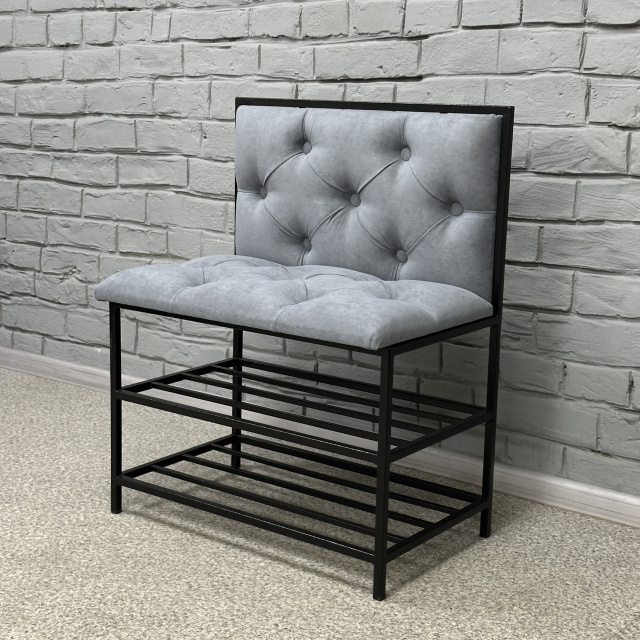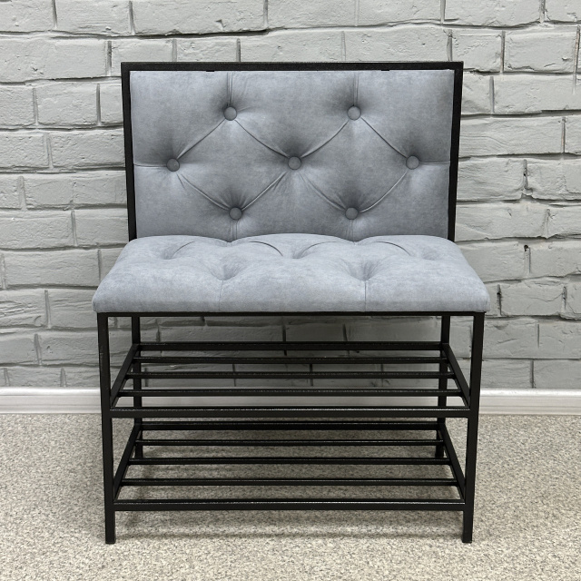 Банкетка для обуви Женева-1 со спинкой 60см велюр серый 7-0-9005