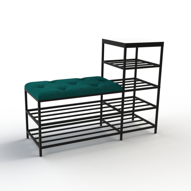 Банкетка является многофункциональной мебелью, которая сочетает в себе стильный дизайн, прочность и надежность конструкции, а также функциональность. Сварной металлический каркас с 2 полками и дополнительные полки для обуви (слева или справа), изготовлены из профильных стальных труб сечением 15х15мм и 10х10мм и покрыты порошковой краской, являются основой банкетки и обеспечивают ей высокую устойчивость и долговечность. Верхняя полчка изготовлена из ДСП толщиной 16мм. Для изготовления сиденья используются поролон толщиной 50мм и износоустойчивый мебельный велюр, с применением разных способов обивки: каретная стяжка, линейная стяжка (утяжка) или просто ровные. Благодаря своему внешнему виду и полочкам Банкетку можно использовать в прихожей, гостиной, спальне, а также - в офисе, примерочной или пригородном доме (даче). На полки можно поставить не только обувь, но и журналы и книги, небольшую домашнюю технику или другие малогабаритные предметы. В целом, такая банкетка обещает быть практичным и стильным дополнением к вашему дому, предоставляя место для сидения и удобное хранение, а также придающее интерьеру современный дизайнерский штрих. Материал каркаса и полок: профильные трубы 15х15мм, 10х10мм Покрытие каркаса и полок: порошковая краска Материал верхней полки: ДСП 16мм Обивочный материал: износоустойчивый мебельный велюр Характеристики Общая длина: 100 см Длина сиденья: 65 см Глубина: 35 см Высота с полками: 75 см Высота сиденья: 45 см