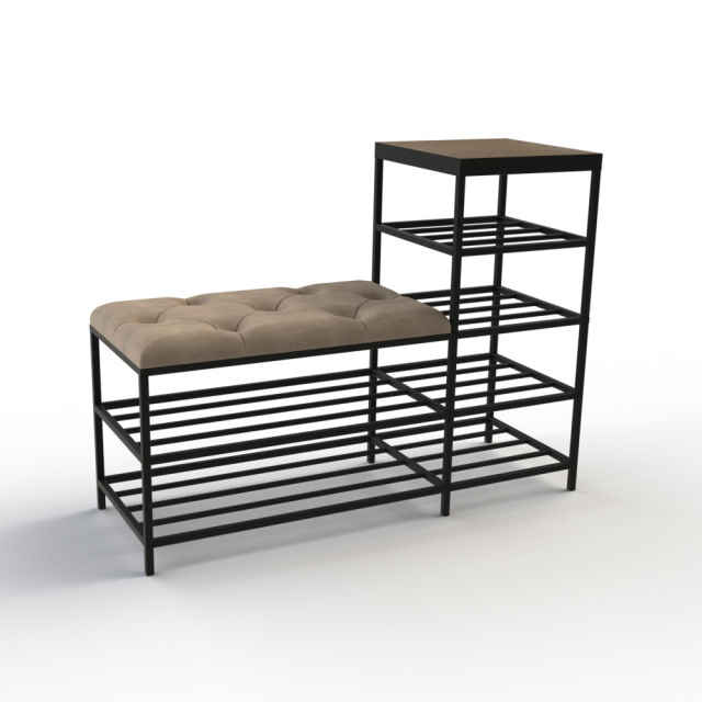 Банкетка является многофункциональной мебелью, которая сочетает в себе стильный дизайн, прочность и надежность конструкции, а также функциональность. Сварной металлический каркас с 2 полками и дополнительные полки для обуви (слева или справа), изготовлены из профильных стальных труб сечением 15х15мм и 10х10мм и покрыты порошковой краской, являются основой банкетки и обеспечивают ей высокую устойчивость и долговечность. Верхняя полчка изготовлена из ДСП толщиной 16мм. Для изготовления сиденья используются поролон толщиной 50мм и износоустойчивый мебельный велюр, с применением разных способов обивки: каретная стяжка, линейная стяжка (утяжка) или просто ровные. Благодаря своему внешнему виду и полочкам Банкетку можно использовать в прихожей, гостиной, спальне, а также - в офисе, примерочной или пригородном доме (даче). На полки можно поставить не только обувь, но и журналы и книги, небольшую домашнюю технику или другие малогабаритные предметы. В целом, такая банкетка обещает быть практичным и стильным дополнением к вашему дому, предоставляя место для сидения и удобное хранение, а также придающее интерьеру современный дизайнерский штрих. Материал каркаса и полок: профильные трубы 15х15мм, 10х10мм Покрытие каркаса и полок: порошковая краска Материал верхней полки: ДСП 16мм Обивочный материал: износоустойчивый мебельный велюр Характеристики Общая длина: 100 см Длина сиденья: 65 см Глубина: 35 см Высота с полками: 75 см Высота сиденья: 45 см