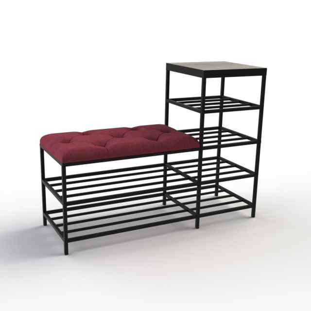 Банкетка является многофункциональной мебелью, которая сочетает в себе стильный дизайн, прочность и надежность конструкции, а также функциональность. Сварной металлический каркас с 2 полками и дополнительные полки для обуви (слева или справа), изготовлены из профильных стальных труб сечением 15х15мм и 10х10мм и покрыты порошковой краской, являются основой банкетки и обеспечивают ей высокую устойчивость и долговечность. Верхняя полчка изготовлена из ДСП толщиной 16мм. Для изготовления сиденья используются поролон толщиной 50мм и износоустойчивый мебельный велюр, с применением разных способов обивки: каретная стяжка, линейная стяжка (утяжка) или просто ровные. Благодаря своему внешнему виду и полочкам Банкетку можно использовать в прихожей, гостиной, спальне, а также - в офисе, примерочной или пригородном доме (даче). На полки можно поставить не только обувь, но и журналы и книги, небольшую домашнюю технику или другие малогабаритные предметы. В целом, такая банкетка обещает быть практичным и стильным дополнением к вашему дому, предоставляя место для сидения и удобное хранение, а также придающее интерьеру современный дизайнерский штрих. Материал каркаса и полок: профильные трубы 15х15мм, 10х10мм Покрытие каркаса и полок: порошковая краска Материал верхней полки: ДСП 16мм Обивочный материал: износоустойчивый мебельный велюр Характеристики Общая длина: 100 см Длина сиденья: 65 см Глубина: 35 см Высота с полками: 75 см Высота сиденья: 45 см