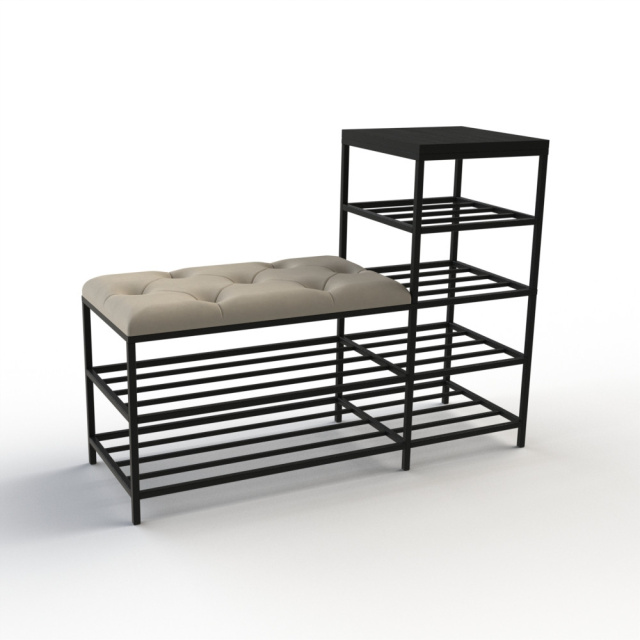 Банкетка является многофункциональной мебелью, которая сочетает в себе стильный дизайн, прочность и надежность конструкции, а также функциональность. Сварной металлический каркас с 2 полками и дополнительные полки для обуви (слева или справа), изготовлены из профильных стальных труб сечением 15х15мм и 10х10мм и покрыты порошковой краской, являются основой банкетки и обеспечивают ей высокую устойчивость и долговечность. Верхняя полчка изготовлена из ДСП толщиной 16мм. Для изготовления сиденья используются поролон толщиной 50мм и износоустойчивый мебельный велюр, с применением разных способов обивки: каретная стяжка, линейная стяжка (утяжка) или просто ровные. Благодаря своему внешнему виду и полочкам Банкетку можно использовать в прихожей, гостиной, спальне, а также - в офисе, примерочной или пригородном доме (даче). На полки можно поставить не только обувь, но и журналы и книги, небольшую домашнюю технику или другие малогабаритные предметы. В целом, такая банкетка обещает быть практичным и стильным дополнением к вашему дому, предоставляя место для сидения и удобное хранение, а также придающее интерьеру современный дизайнерский штрих. Материал каркаса и полок: профильные трубы 15х15мм, 10х10мм Покрытие каркаса и полок: порошковая краска Материал верхней полки: ДСП 16мм Обивочный материал: износоустойчивый мебельный велюр Характеристики Общая длина: 100 см Длина сиденья: 65 см Глубина: 35 см Высота с полками: 75 см Высота сиденья: 45 см