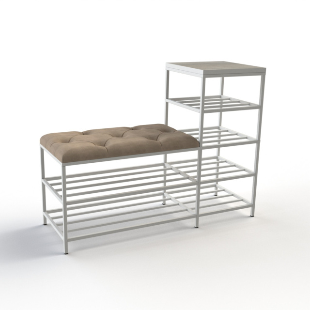 Банкетка является многофункциональной мебелью, которая сочетает в себе стильный дизайн, прочность и надежность конструкции, а также функциональность. Сварной металлический каркас с 2 полками и дополнительные полки для обуви (слева или справа), изготовлены из профильных стальных труб сечением 15х15мм и 10х10мм и покрыты порошковой краской, являются основой банкетки и обеспечивают ей высокую устойчивость и долговечность. Верхняя полчка изготовлена из ДСП толщиной 16мм. Для изготовления сиденья используются поролон толщиной 50мм и износоустойчивый мебельный велюр, с применением разных способов обивки: каретная стяжка, линейная стяжка (утяжка) или просто ровные. Благодаря своему внешнему виду и полочкам Банкетку можно использовать в прихожей, гостиной, спальне, а также - в офисе, примерочной или пригородном доме (даче). На полки можно поставить не только обувь, но и журналы и книги, небольшую домашнюю технику или другие малогабаритные предметы. В целом, такая банкетка обещает быть практичным и стильным дополнением к вашему дому, предоставляя место для сидения и удобное хранение, а также придающее интерьеру современный дизайнерский штрих. Материал каркаса и полок: профильные трубы 15х15мм, 10х10мм Покрытие каркаса и полок: порошковая краска Материал верхней полки: ДСП 16мм Обивочный материал: износоустойчивый мебельный велюр Характеристики Общая длина: 100 см Длина сиденья: 65 см Глубина: 35 см Высота с полками: 75 см Высота сиденья: 45 см