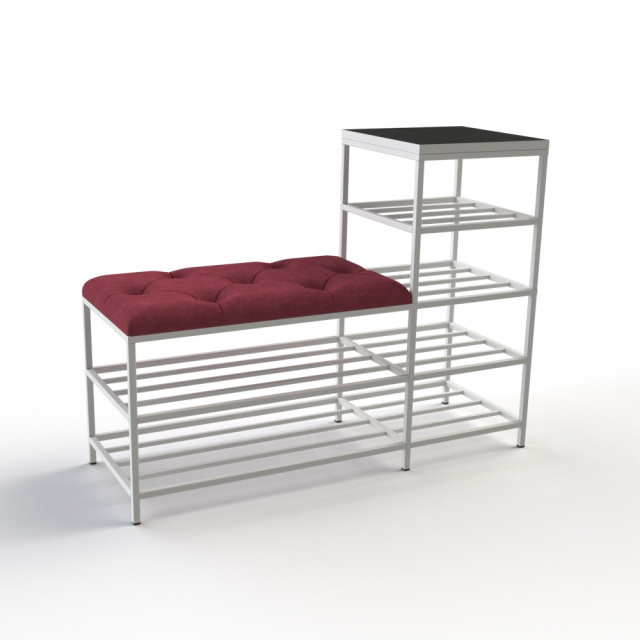 Банкетка является многофункциональной мебелью, которая сочетает в себе стильный дизайн, прочность и надежность конструкции, а также функциональность. Сварной металлический каркас с 2 полками и дополнительные полки для обуви (слева или справа), изготовлены из профильных стальных труб сечением 15х15мм и 10х10мм и покрыты порошковой краской, являются основой банкетки и обеспечивают ей высокую устойчивость и долговечность. Верхняя полчка изготовлена из ДСП толщиной 16мм. Для изготовления сиденья используются поролон толщиной 50мм и износоустойчивый мебельный велюр, с применением разных способов обивки: каретная стяжка, линейная стяжка (утяжка) или просто ровные. Благодаря своему внешнему виду и полочкам Банкетку можно использовать в прихожей, гостиной, спальне, а также - в офисе, примерочной или пригородном доме (даче). На полки можно поставить не только обувь, но и журналы и книги, небольшую домашнюю технику или другие малогабаритные предметы. В целом, такая банкетка обещает быть практичным и стильным дополнением к вашему дому, предоставляя место для сидения и удобное хранение, а также придающее интерьеру современный дизайнерский штрих. Материал каркаса и полок: профильные трубы 15х15мм, 10х10мм Покрытие каркаса и полок: порошковая краска Материал верхней полки: ДСП 16мм Обивочный материал: износоустойчивый мебельный велюр Характеристики Общая длина: 100 см Длина сиденья: 65 см Глубина: 35 см Высота с полками: 75 см Высота сиденья: 45 см