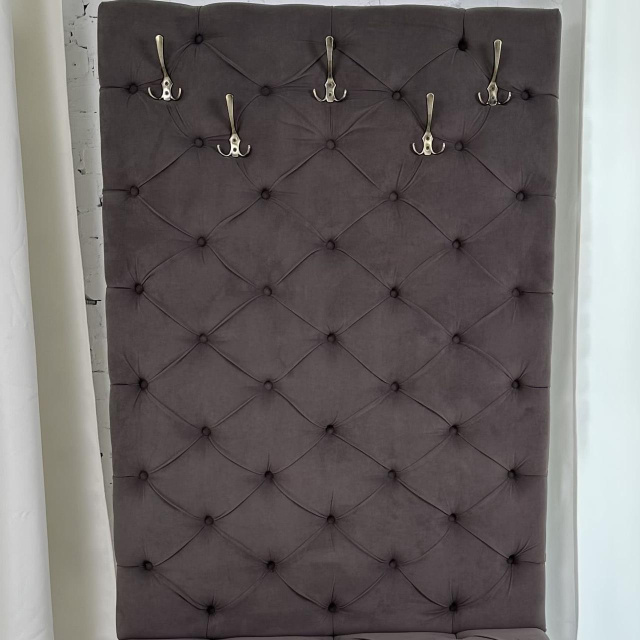 Вешалка-панно сочетает в себе стильный дизайн, прочность и надежность. Для изготовления панно используются поролон толщиной 50мм и износоустойчивый