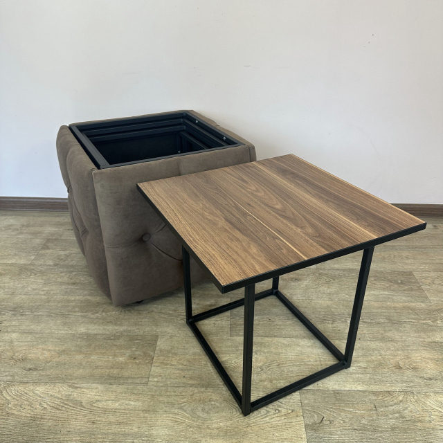 Пуф-трансформер 5в1 Остин-1 со столиком велюр коричневый/орех калифорнийский 1-4-9005
