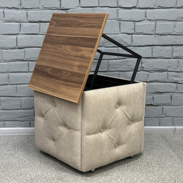 Пуф-трансформер 5в1 Остин-1 со столиком велюр бежевый/орех калифорнийский 3-4-9005