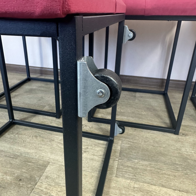 Пуф-трансформер является многофункциональной мебелью, которая сочетает в себе стильный дизайн, прочность и надежность конструкции, а также функциональность. В высоту Пуф 45см, в глубину и ширину - 47см и эти характеристики неизменны, но он раскладывается на 4 металлических стульчика с мягкими сиденьями и 1 столик высотой 45 см. Для удобного перемещения по полу Пуф оборудован 4 колесиками, а чтобы не повредить поверхность пола после трансформации, на ножках стульчиков установлены заглушки. Сварной металлический каркас (ножки стульчиков и столика) изготовлен из профильной стальной трубы сечением 15х15мм с толщиной стенки 1,5мм и покрыт порошковой краской черного цвета. Для изготовления сидений используются поролон толщиной 50мм и износоустойчивый мебельный велюр (7 цветов на выбор), с применением разных способов обивки: каретная стяжка или пиковка. Поверхность столика изготовлена из ДСП (5 цветов на выбор) толщиной 16мм. Благодаря своему внешнему виду и функциональности Пуф можно использовать в прихожей, гостиной, спальне, кухне, а также - в офисе, примерочной или пригородном доме (даче). В целом, такой Пуф обещает быть практичным и стильным дополнением к вашему дому, предоставляя удобное место для сидения, а также придающее интерьеру современный дизайнерский штрих. Вы можете указать в комментарии к заказу желаемый цвет обивочного материала и поверхности столика. В любом случае менеджер свяжется с Вами по указанным контактам для уточнения параметров Пуфа. Раскладывается на 4 стульчика и 1 столик высотой 45 см Материал каркаса (ножек): профильная труба 15х15х1,5мм Покрытие каркаса: порошковая краска Обивочный материал: износоустойчивый мебельный велюр Материал поверхности столика: ДСП 16мм Размеры (ДШВ): 47х47х45 см Максимальная нагрузка: 170 кг Цвет металлического каркаса: Черный (RAL 9005) Цвет обивки: Коричневый (1), Бирюзовый (2), Бежевый (3), Красный (4), Серо-коричневый (5), Светло-серый (6), Серый (7), Изумрудный (8), Синий (9), Черный (10) Цвет дерева: Риголетто темный (1), Дуб платиновый (2), Белая Аляска (3), Орех калифорнийский (4), Черный (5)