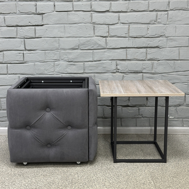 Пуф-трансформер 5в1 Остин-1 со столиком велюр серый/дуб платиновый 7-2-9005
