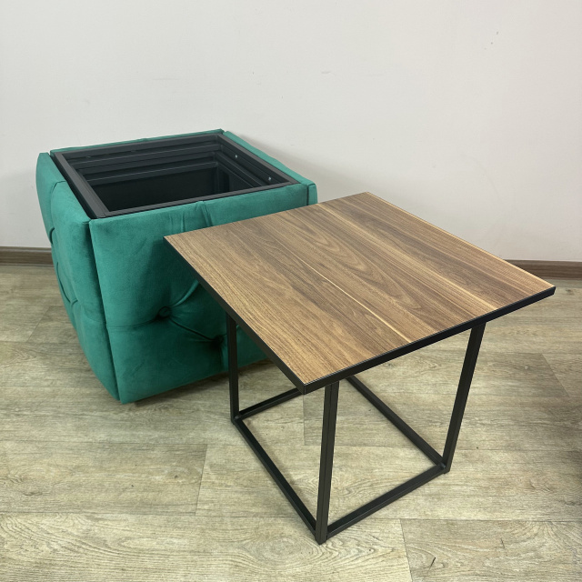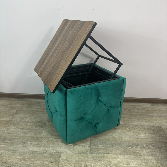Пуф-трансформер 5в1 Остин-1 со столиком велюр изумрудный/орех калифорнийский 8-4-9005