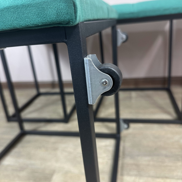 Пуф-трансформер является многофункциональной мебелью, которая сочетает в себе стильный дизайн, прочность и надежность конструкции, а также функциональность. В высоту Пуф 45см, в глубину и ширину - 47см и эти характеристики неизменны, но он раскладывается на 4 металлических стульчика с мягкими сиденьями и 1 столик высотой 45 см. Для удобного перемещения по полу Пуф оборудован 4 колесиками, а чтобы не повредить поверхность пола после трансформации, на ножках стульчиков установлены заглушки. Сварной металлический каркас (ножки стульчиков и столика) изготовлен из профильной стальной трубы сечением 15х15мм с толщиной стенки 1,5мм и покрыт порошковой краской черного цвета. Для изготовления сидений используются поролон толщиной 50мм и износоустойчивый мебельный велюр (7 цветов на выбор), с применением разных способов обивки: каретная стяжка или пиковка. Поверхность столика изготовлена из ДСП (5 цветов на выбор) толщиной 16мм. Благодаря своему внешнему виду и функциональности Пуф можно использовать в прихожей, гостиной, спальне, кухне, а также - в офисе, примерочной или пригородном доме (даче). В целом, такой Пуф обещает быть практичным и стильным дополнением к вашему дому, предоставляя удобное место для сидения, а также придающее интерьеру современный дизайнерский штрих. Вы можете указать в комментарии к заказу желаемый цвет обивочного материала и поверхности столика. В любом случае менеджер свяжется с Вами по указанным контактам для уточнения параметров Пуфа. Раскладывается на 4 стульчика и 1 столик высотой 45 см Материал каркаса (ножек): профильная труба 15х15х1,5мм Покрытие каркаса: порошковая краска Обивочный материал: износоустойчивый мебельный велюр Материал поверхности столика: ДСП 16мм Размеры (ДШВ): 47х47х45 см Максимальная нагрузка: 170 кг Цвет металлического каркаса: Черный (RAL 9005) Цвет обивки: Коричневый (1), Бирюзовый (2), Бежевый (3), Красный (4), Серо-коричневый (5), Светло-серый (6), Серый (7), Изумрудный (8), Синий (9), Черный (10) Цвет дерева: Риголетто темный (1), Дуб платиновый (2), Белая Аляска (3), Орех калифорнийский (4), Черный (5)