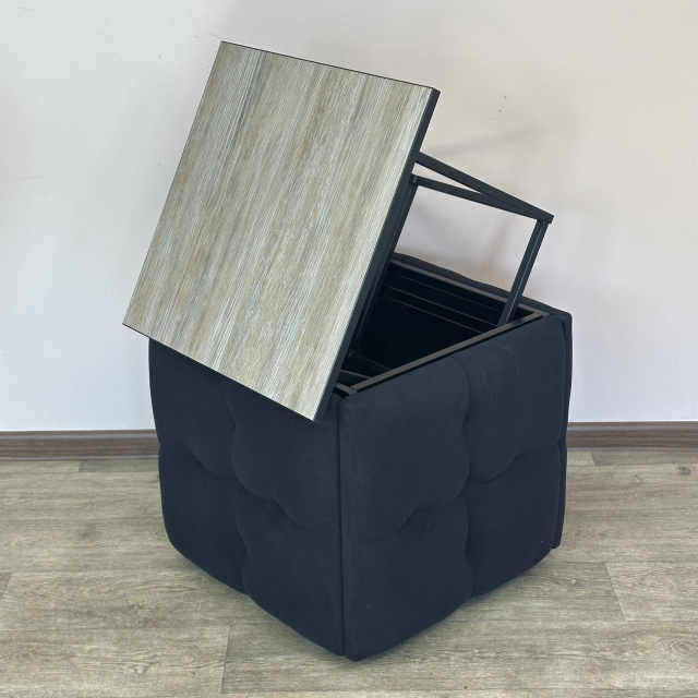 Пуф-трансформер 5в1 Остин-4 со столиком велюр черный/дуб платиновый 10-2-9005