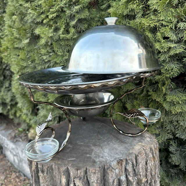 Садж – это не просто хорошая посуда для подачи шашлыка, овощей и рыбы, но и подставка с подогревом, которая сохранит Ваши продукты теплыми до окончания трапезы.