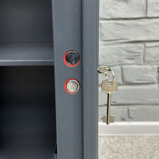 Надежный ключевой замок сувальдного типа с 2 ригелями диаметром 16 мм (горизонтальное отпирание) оградит ваши документы или ценности от посторонних.