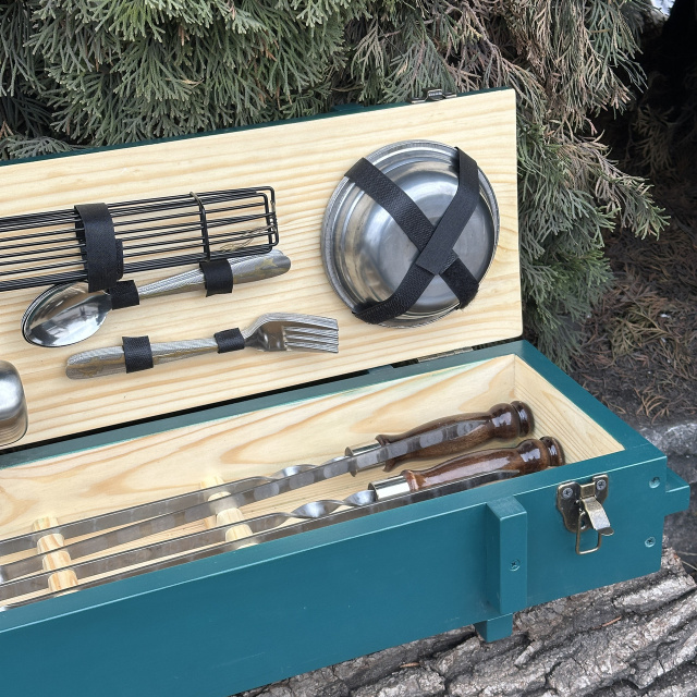 Впечатляющий Подарочный набор шампуров Комбат - идеальный подарок для любителей гриля и мастеров кулинарии! Этот набор включает в себя шампура с лезвиями, изготовленными из высококачественной сертифицированной нержавеющей стали, что гарантирует долговечность, прочность и устойчивость к коррозии на протяжении многих лет. Ручки шампуров выполнены из прочного дуба, который обладает не только элегантным видом, но и комфортным ощущением в руке. Благодаря своей природной прочности, деревянные ручки обеспечивают безопасность и удобство при готовке. И что может быть лучше, чем набор, который также является произведением искусства? Кейс ручной работы изготовлен из натурального дерева твердых пород, и поэтому является не только элегантным аксессуаром для хранения и транспортировки, но и добавляет нотку изыска и роскоши в вашей кухне или на пикнике. Подарочный набор шампуров - символ гостеприимства и радости приготовления пищи на открытом воздухе. Будьте уверены, что ваш подарок будет востребован и оценен на любом мероприятии. Не упустите возможность порадовать ваших близких или друзей этим роскошным подарком, который сочетает в себе высокое качество, элегантность и удобство. Закажите Подарочный набор шампуров прямо сейчас! В комплект входит: Кейс из дерева 740х250х160 мм 6 шампуров с деревянной ручкой 3*12*630 мм 6 тарелок (диаметр 16) 6 вилок 6 ложек Решетка для овощей Термос Мангал Завод - Качественно и Прозрачно Стальная гарантия Мы гарантируем, что наши мангалы прослужат Вам не менее 10 лет. Распакуй и жарь! Мы можем укомплектовать мангал всем необходим для того, чтобы Вы приступили к готовке сразу после получения товара. Быстрая доставка Получите мангал в кратчайшие сроки по всей Украине. Ничего лишнего Только вкус мяса. Мы используем только нетоксичную термостойкую краску, которая выдерживает температуру 800°С. Европейское качество Мы завод - вся продукция серийного производства на высокоточном лазерном оборудовании из сертифицированной стали. 3000 отзывов Присоединяйся к лагерю ценителей мяса!
