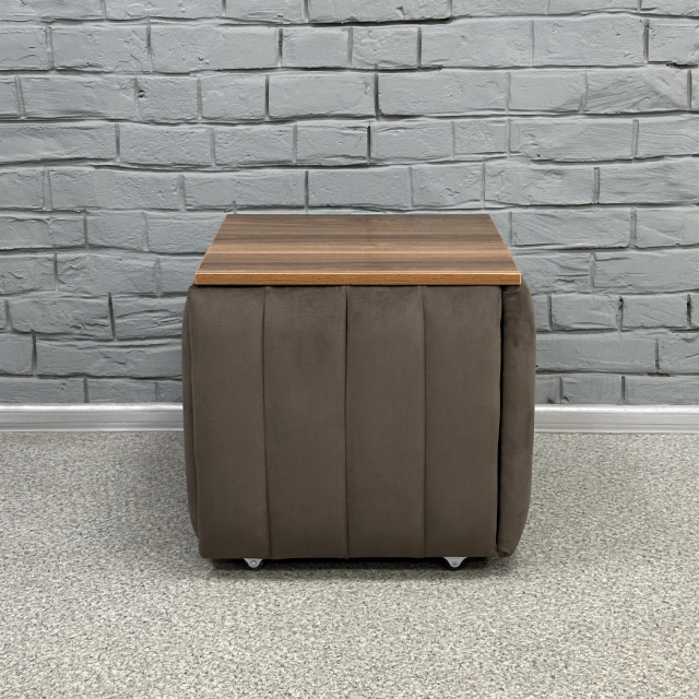 Пуф-трансформер 5в1 Остин-2 со столиком велюр серо-коричневый/орех калифорнийский 5-4-9003