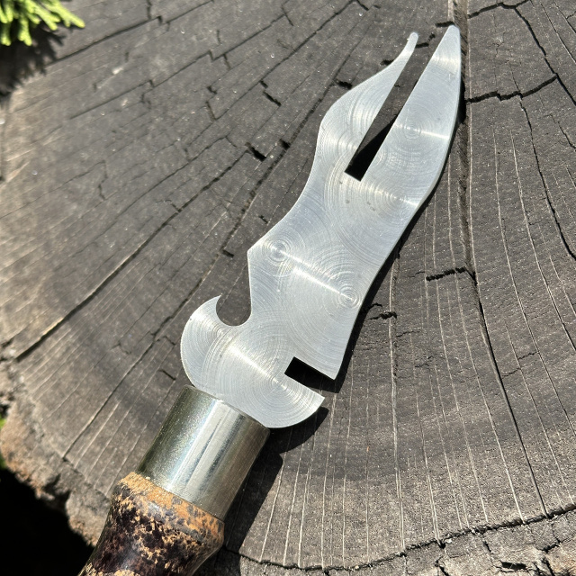 Вилка имеет два зубца на конце, которые помогают удерживать мясо на шампуре, предотвращая его скольжение или падение во время переворачивания или снятия с шампура.