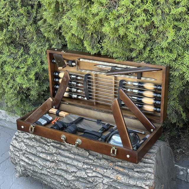 Впечатляющий Подарочный Набор шампуров кейс-стол "Пикник" - идеальный подарок для любителей гриля и мастеров кулинарии!