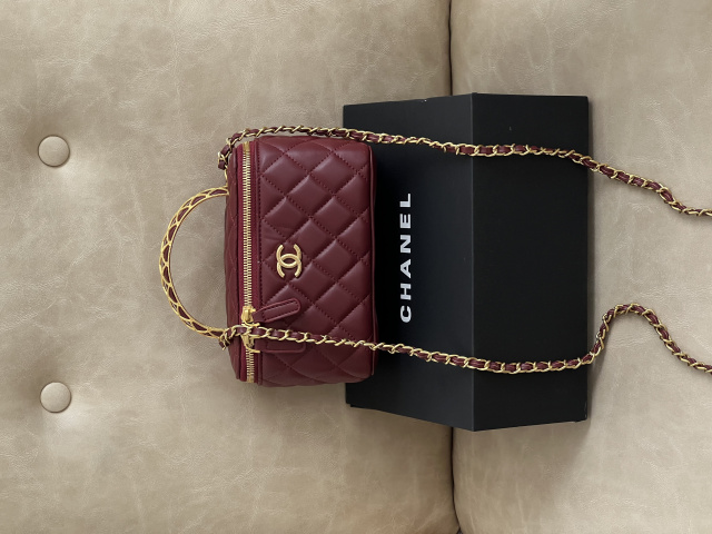 Сумка Chanel Classic Lambskin Pearl Crush Vanity Bag Premium бордовий